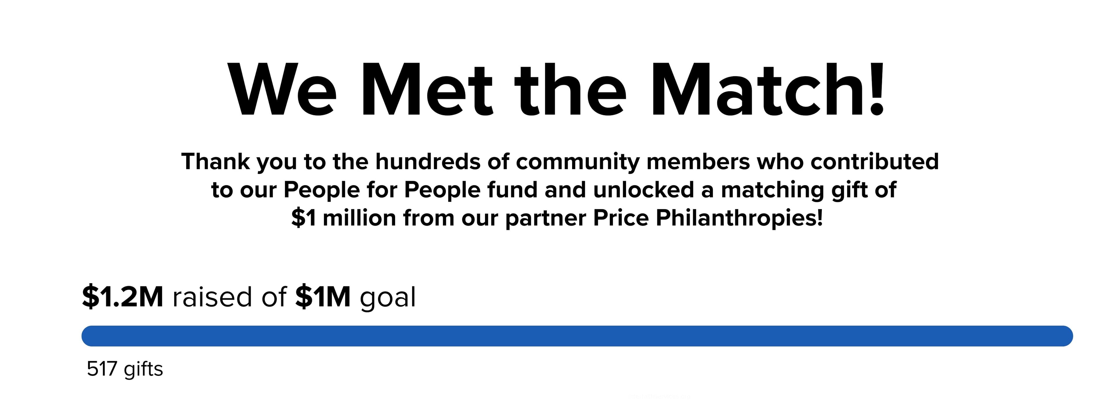 Thanks to you, every donation was matched dollar for dollar — up to $1 million —demonstrating the collective power of neighbors helping neighbors.